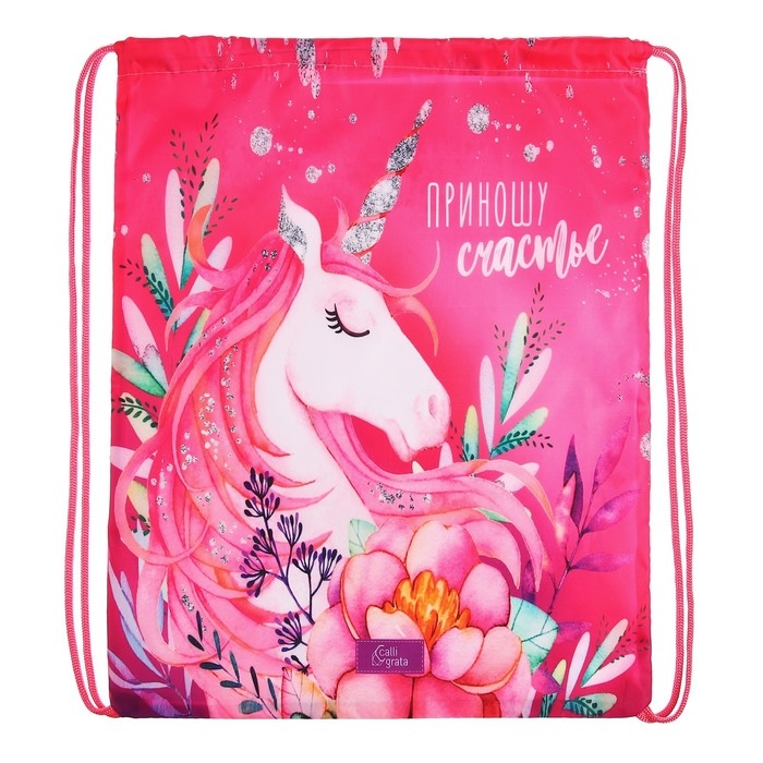 Мешок для обуви 420 х 340 мм, Calligrata МСО-5С, (мягкий полиэстер, плотность 210D), "Приношу счастье"