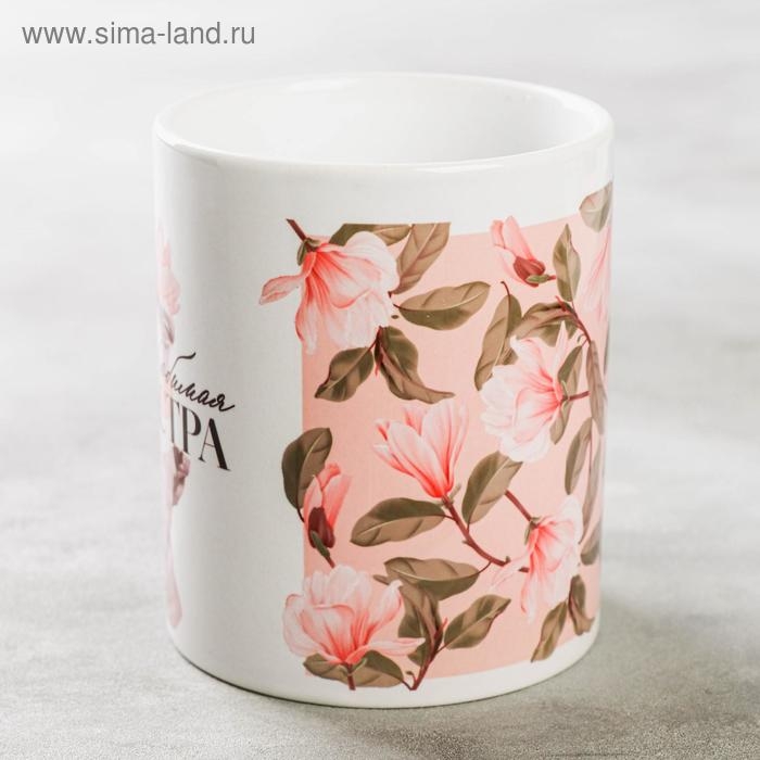 Кружка сублимация "Любимая сестра" цветы, 320 мл, с нанесением