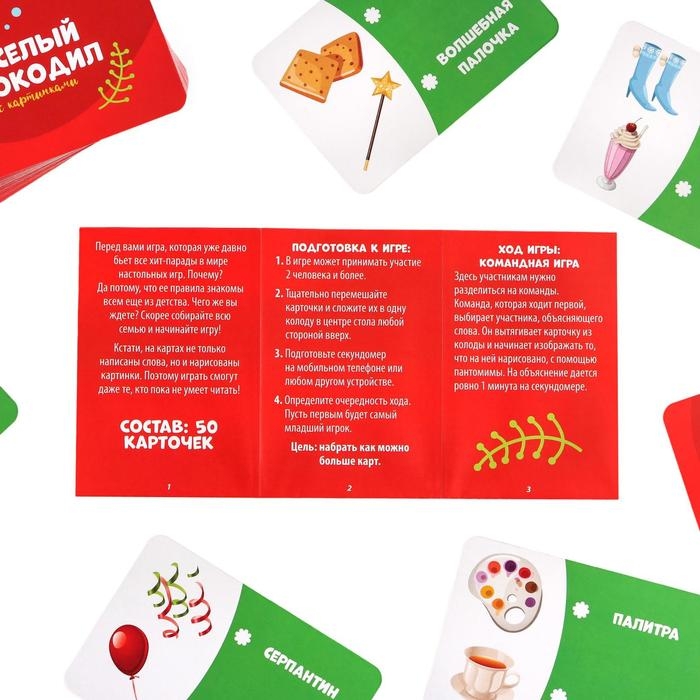Новогодняя настольная игра «Новый год: Веселый крокодил», с картинками, 50 карт, 5+