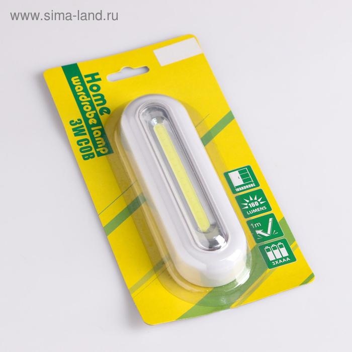 Фонарь-светильник, 3 Вт, 160 лм, COB, 3 ААА, клейкая основа, 4.4 х 2.8 х 13.8 см