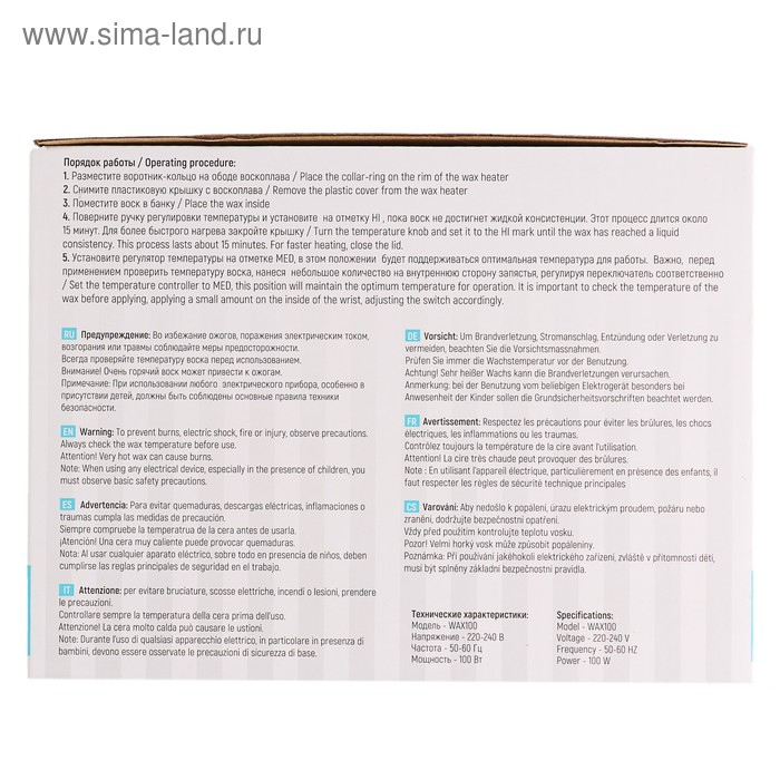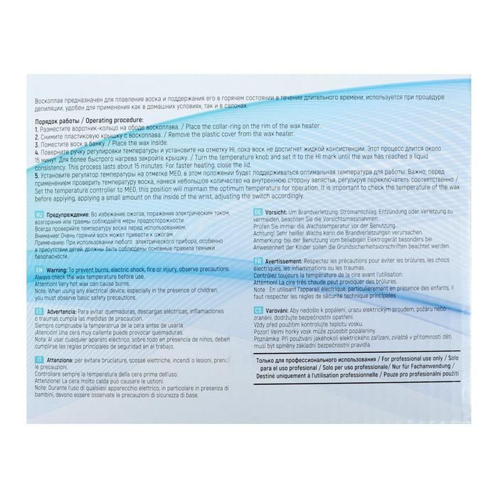 - В комплекте: алюминиевый контейнер для разогрева воска и пластиковая крышка.