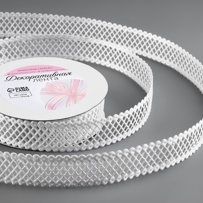Лента фигурная «Ромбы резные», 25 мм, 9 ± 0,5 м, цвет белый