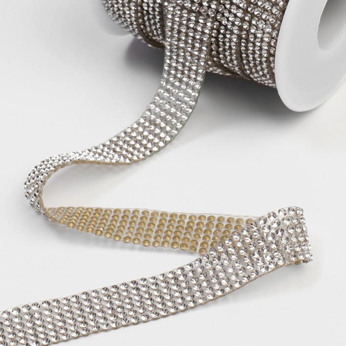 Стразы термоклеевые, ширина - 15 мм, 4,5 ± 0,5 м, цвет серебряный