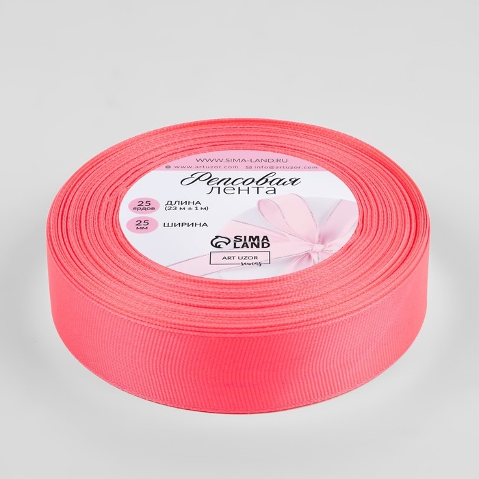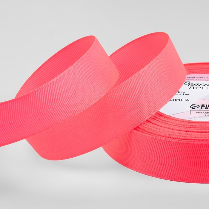 Лента репсовая, 25 мм, 23 ± 1 м, цвет неоновый розовый №14