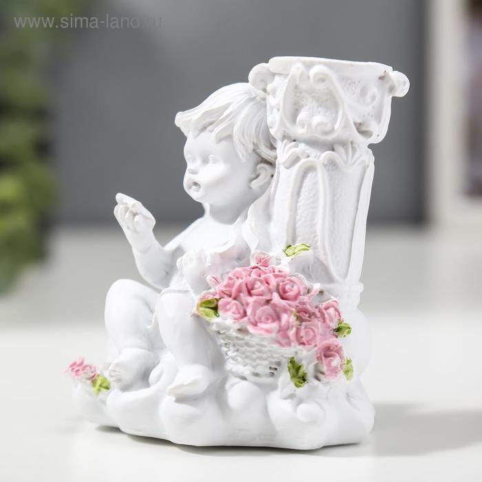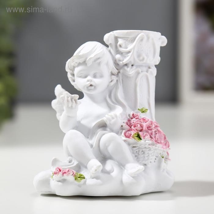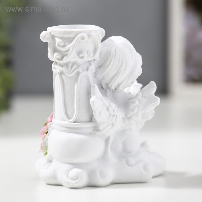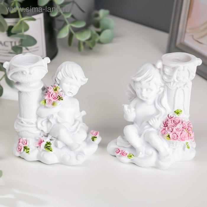 Сувенир полистоун подсвечник "Белоснежный ангел с розами" МИКС 10х9,5х6,8 см
