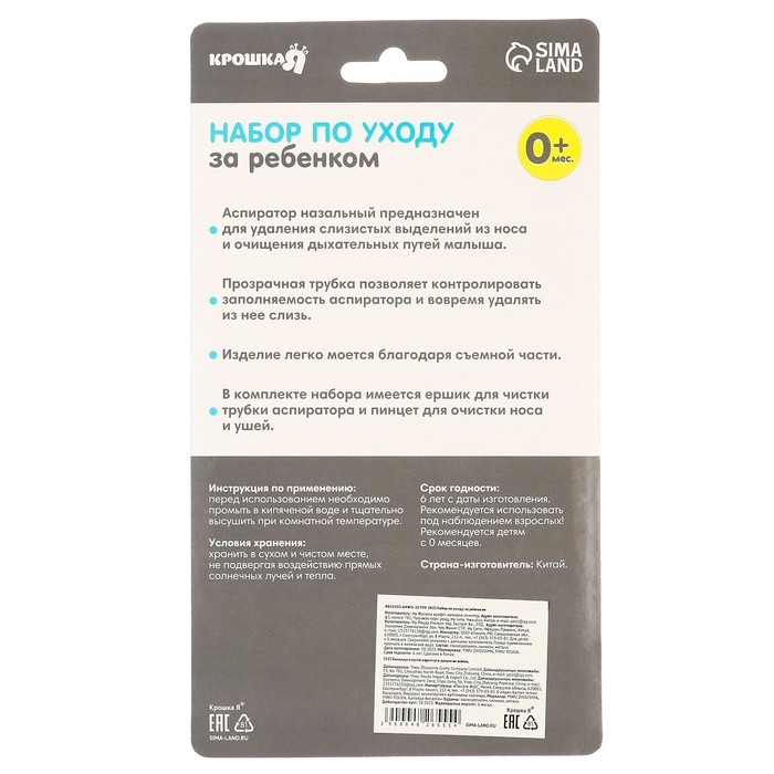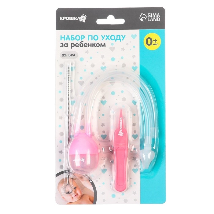 Набор по уходу за ребенком (аспиратор, щеточка, пинцет), цвет розовый