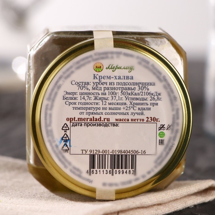 Состав: урбеч из подсолнечника, мёд липовый.