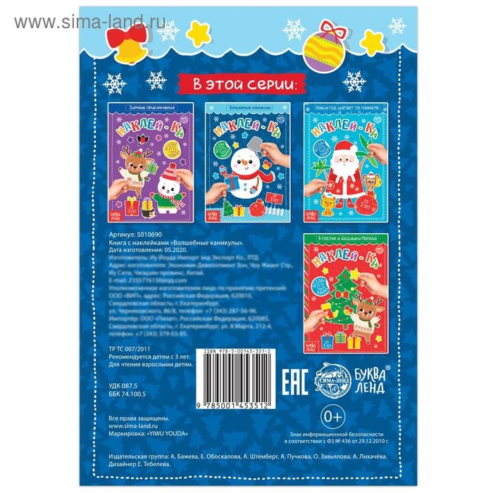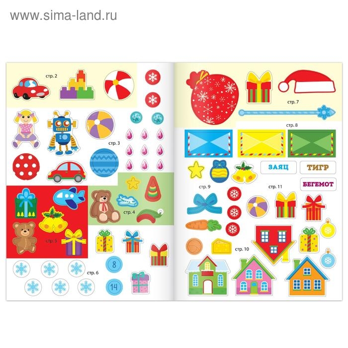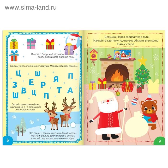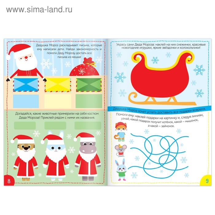 Книга с наклейками разнообразит каникулы малыша и увлечёт в мир весёлых заданий и головоломок. С её помощью ребёнок поможет Дедушке Морозу рассортировать письма от детей и доставить новогодние подарки, а ещё решит занимательные IQ-задачки.