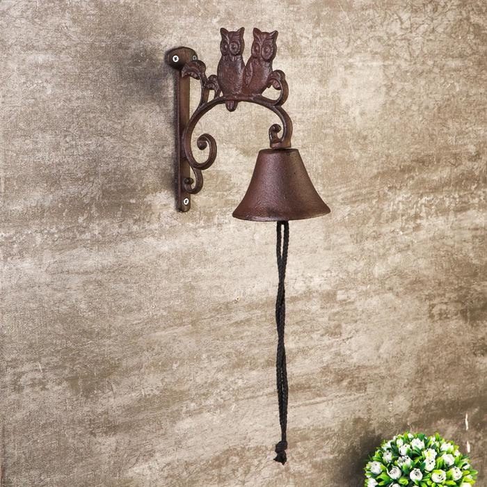 Колокол сувенирный металл "Два филина на ветке" 21х16х10 см