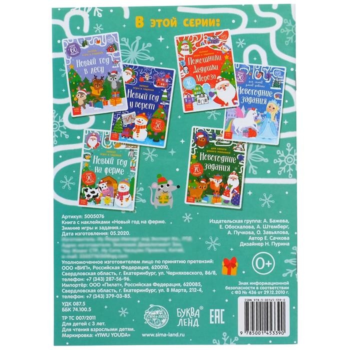 Книжка «Новый год на ферме. Зимние игры и задания», с наклейками, 12 стр.