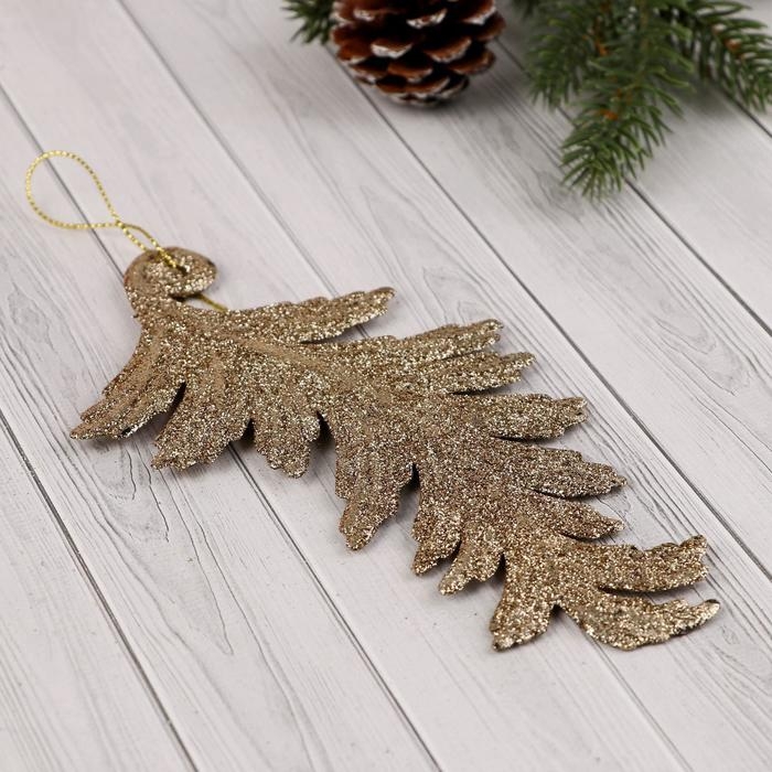 Украшение ёлочное "Пёрышко" (набор 2 шт) 8х16 см, золото