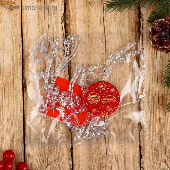 Украшение ёлочное "Олень в прыжке - магия" 13х12 см, прозрачный