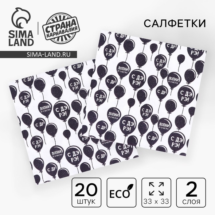 Салфетки бумажные «С днём рождения», двухслойные, воздушные шары, 33х33 см, набор 20 шт.