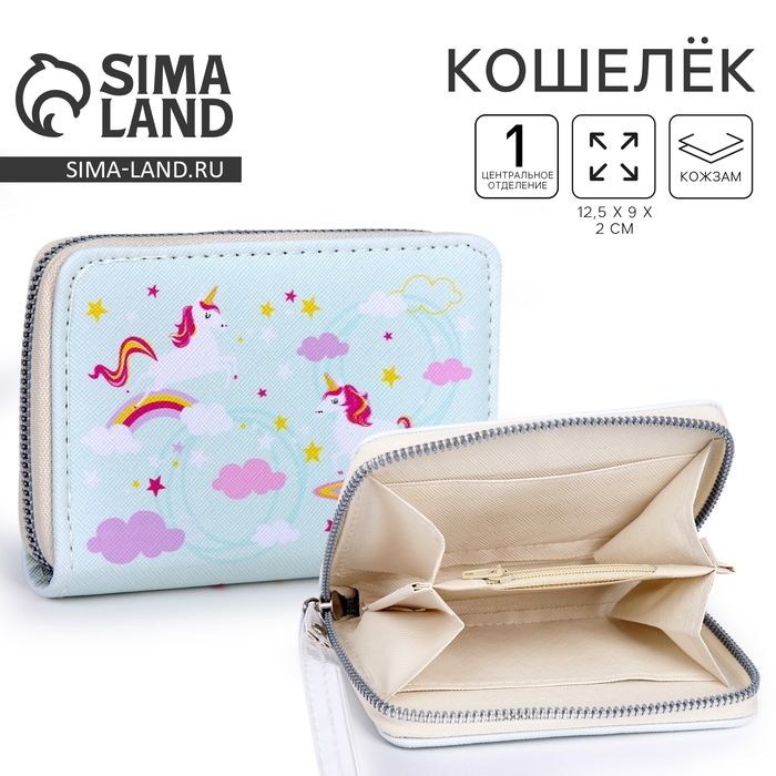 Кошелёк детский «Единороги» 12.5х9х2 см, голубой