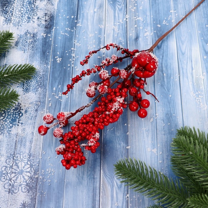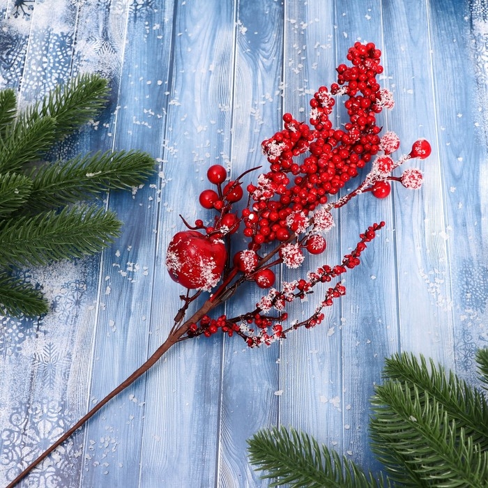 Декор "Зимнее очарование" веточка с яблочком и ягодками, 30 см