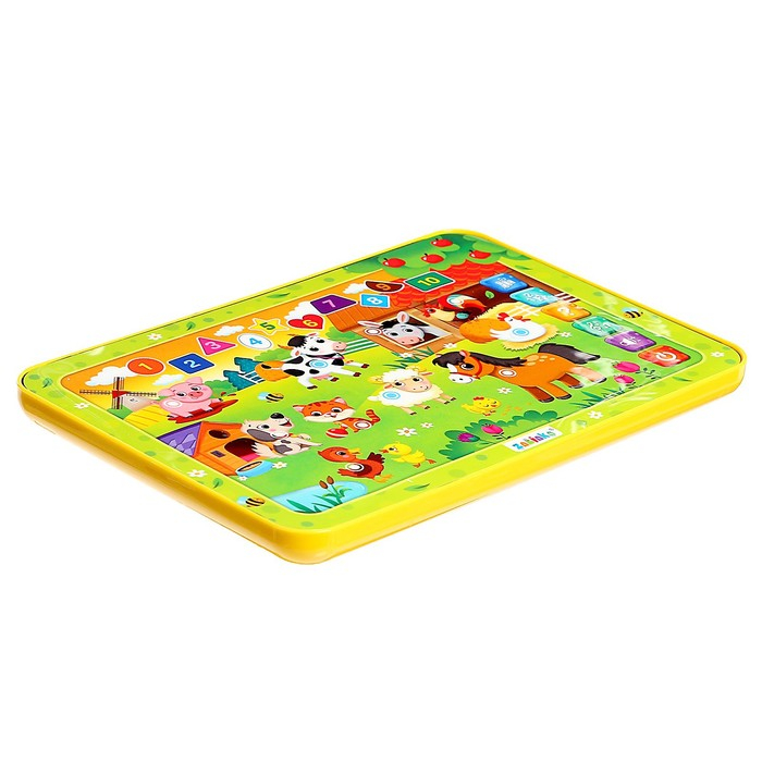С этим ярким планшетом малыш сможет весело и с пользой проводить время. Игрушка обладает звуковыми эффектами, загадки и интересные игры расскажут о животных фермы и помогут развить мышление ребёнка, а любимые песенки сделают занятия ещё увлекательнее.