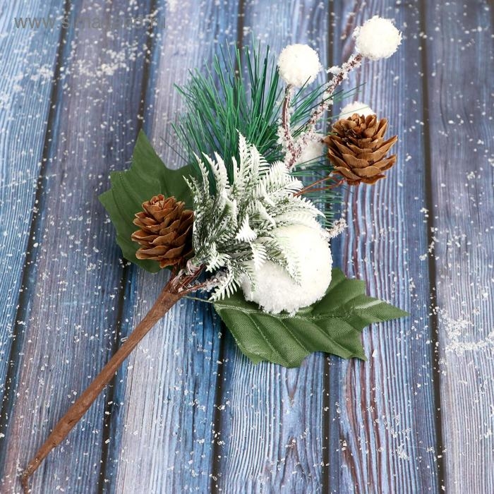 Декор "Зимнее очарование" белое яблоко шишки хвоя, 21 см