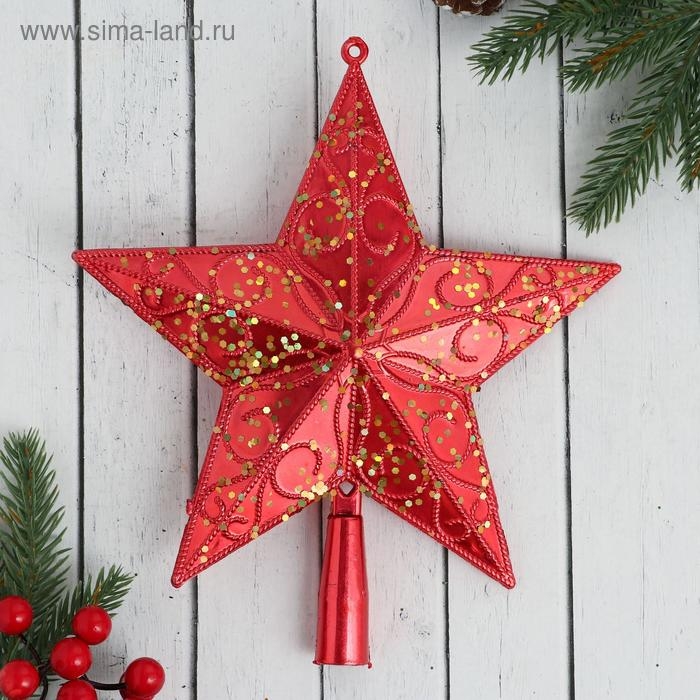 Наконечник "Звезда" блестящая с узором, 20х22 см красный