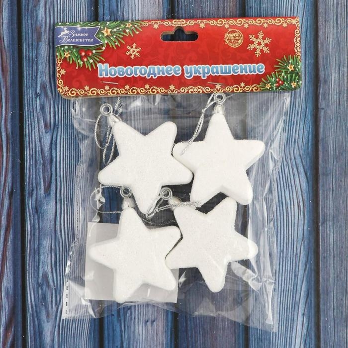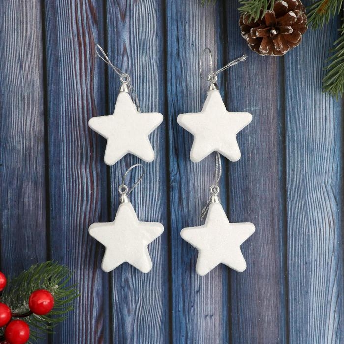 Украшение ёлочное "Снежные звёзды" (набор 4 шт) 4,5 см, белый