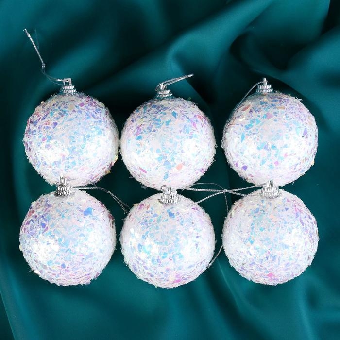 Набор шаров пластик d-6 см, 6 шт "Снежное сияние" белый