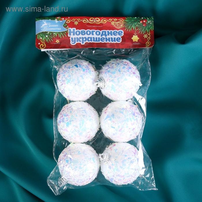 Набор шаров пластик d-5 см, 6 шт "Снежное сияние" белый