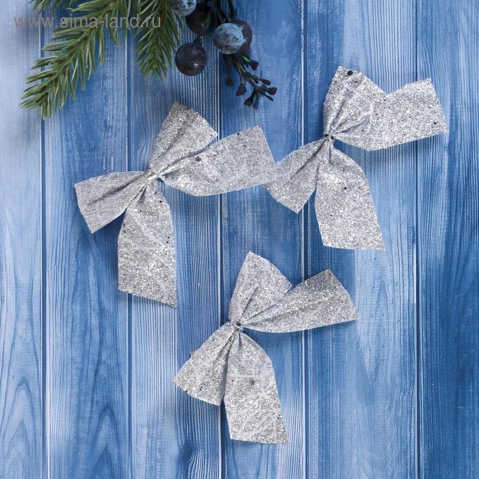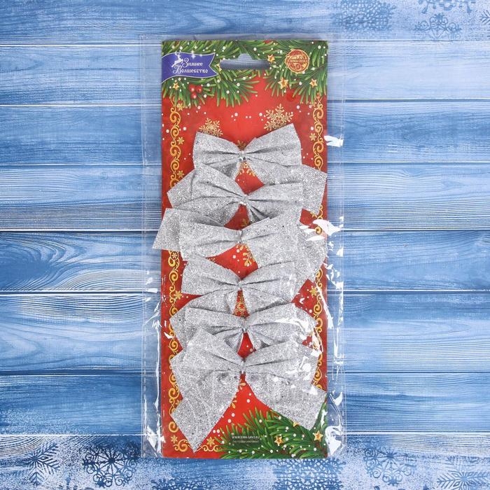 Украшение ёлочное "Бант серебристый" (набор 6 шт) 6х6,5 см