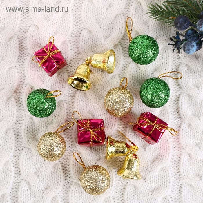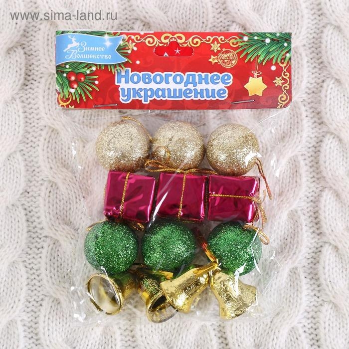 Набор украшений пластик 13 шт "Новогодний бум" (6 шаров, 4 колокольчика, 3 подарка) 3 см