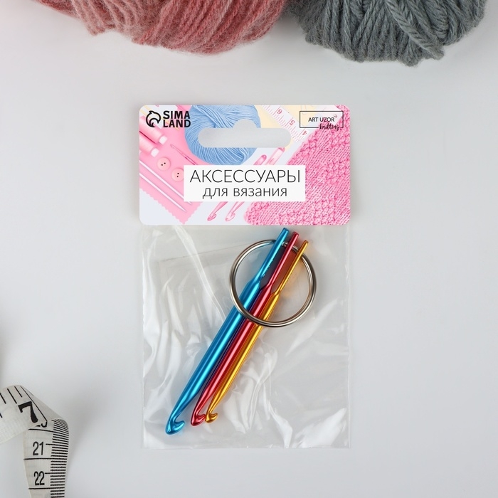 Набор крючков для вязания портативный, на кольце, d = 3/4/5 мм, цвет разноцветный