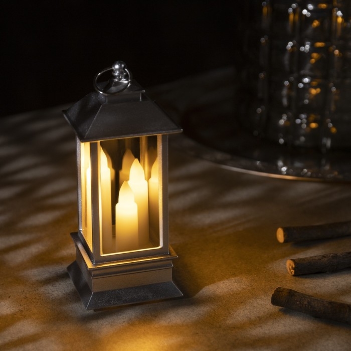Светодиодная фигура «Серебристый фонарь со свечками» 5.5 × 13 × 5.5 см, пластик, батарейки AG13х3 (в комплекте), свечение тёплое белое