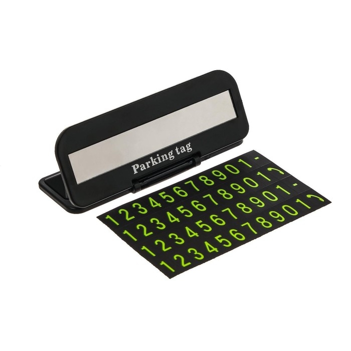 Парковочная табличка с номером телефона имеет подвижную конструкцию, что позволяет скрыть номер телефона легким движением одной руки. Набор имеет трафарет с цифрами от 0 до 9- это позволяет быстрого и легкого составить или изменить номера телефона, в случае если автомобилем пользуется не один водитель. В нижней части корпуса находится клейкая лента, которая позволяет надежно прикрепить табличку в нужном месте автомобиля. Современный дизайн таблички не будет выделяться из интерьера салона вашего автомобиля. Парковочная табличка залог спокойствия водителя.