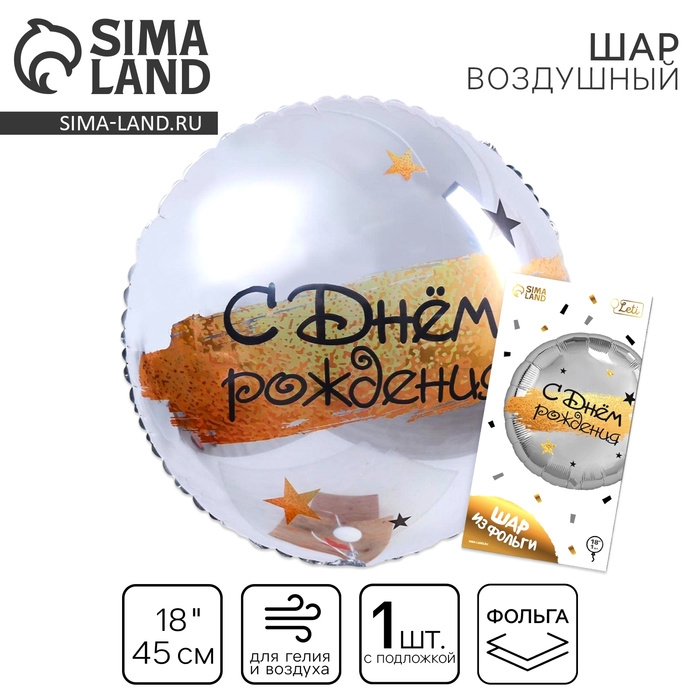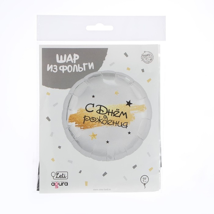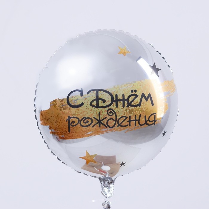 Воздушный шар фольгированный 18" «С Днём рождения», круг, цвет серебро, с подложкой