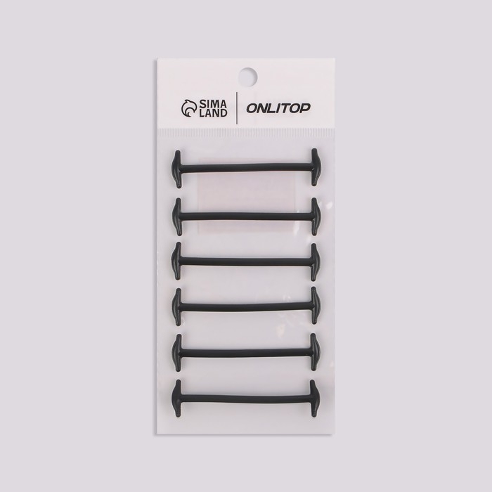 Набор шнурков для обуви, 6 шт, силиконовые, круглые, d = 3 мм, 6,5 см, цвет чёрный