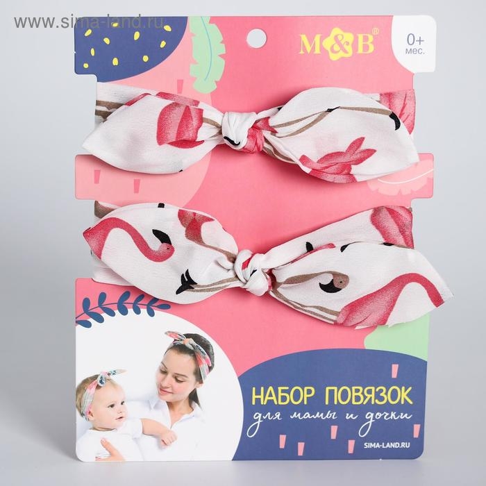 Повязка на голову для мамы и дочки «Набор для фотосессии: фламинго», 2 шт., цв. белый, M&B