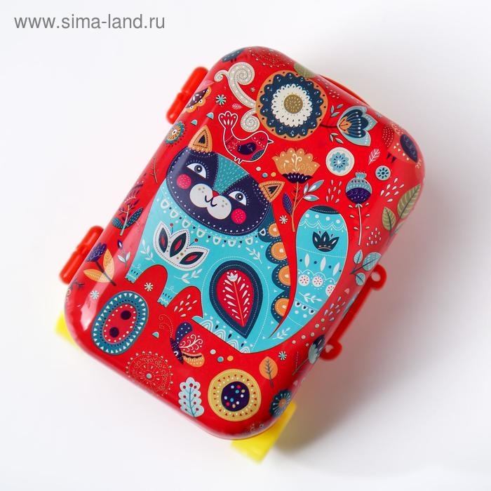 Шкатулка металл чемодан "Котик на полянке" 10х7х5 см
