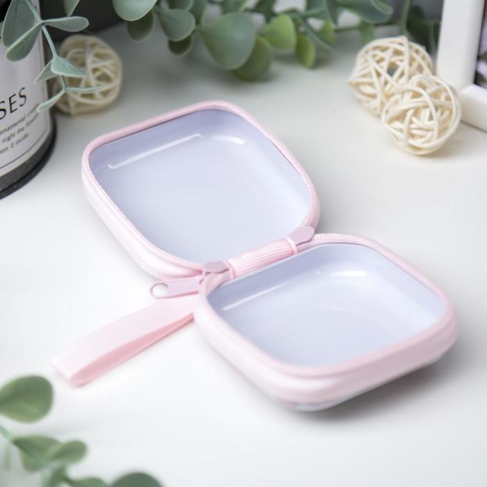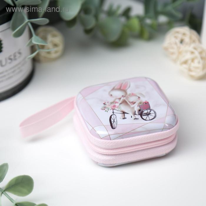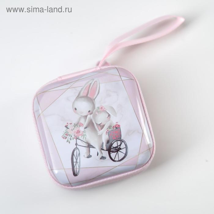 Шкатулка металл на молнии с петелькой "Зайчата на велосипеде" 6,5х6,5х3 см