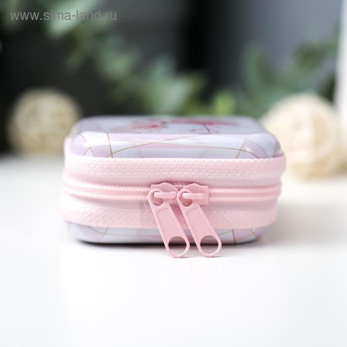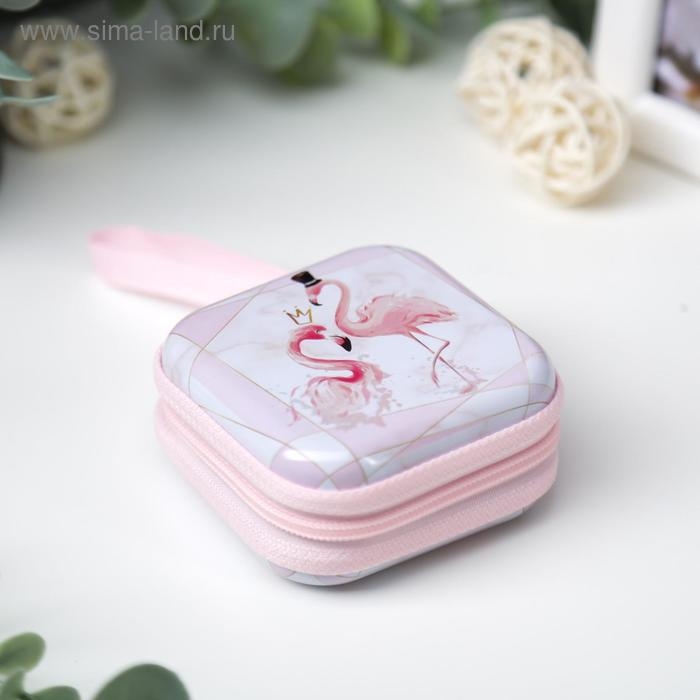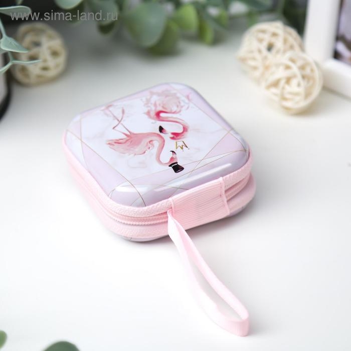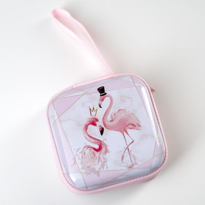 Шкатулка металл на молнии с петелькой "Фламинго" 6,5х6,5х3 см