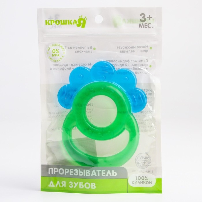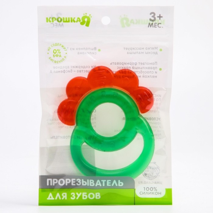 Прорезыватель снимает неприятные ощущения в период появления первых зубов. Также изделие подготовит ребёнка к процессу жевания, поспособствует формированию правильного прикуса и развитию мелкой моторики рук.Перед использованием предмет рекомендуется охладить (в воде или холодильнике). Внутри грызунка находится дистиллированная жидкость, которая сохраняет низкую температуру. Покусывая такой прорезыватель, кроха быстрее почувствует облегчение. Приспособление смягчит боль, уменьшит отёк и зуд в ротовой полости.Особенности:рельефные элементы для массажа дёсен;мягкий и эластичный материал;оптимальные форма и размер для детской ладони;охлаждающий эффект.Внимание! Не помещайте прорезыватель в морозильную камеру.Товар изготовлен из прочного и безопасного силикона, не содержащего бисфенола А. Подходит для детей от 3 месяцев.