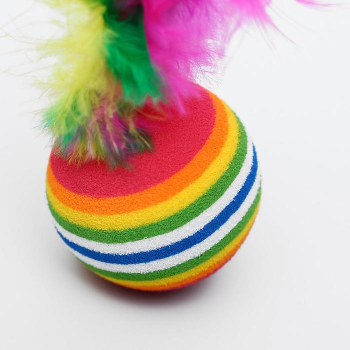 Набор из 2 игрушек "Полосатые шарики с перьями", диаметр шара 3,8 см, микс цветов