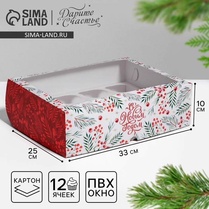 Коробка для капкейков «С Новым Годом» 25 х 33 х 10 см, Новый год