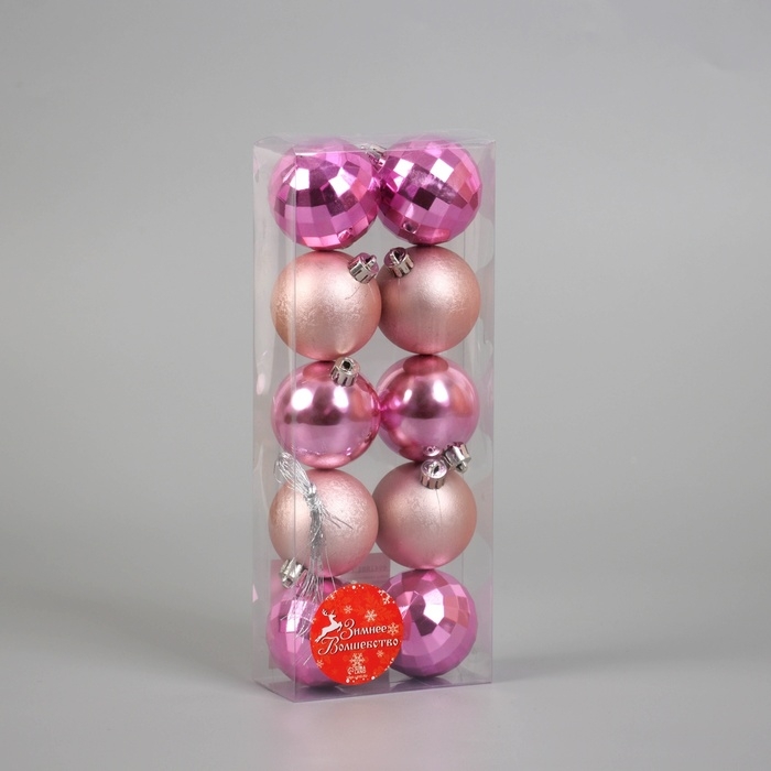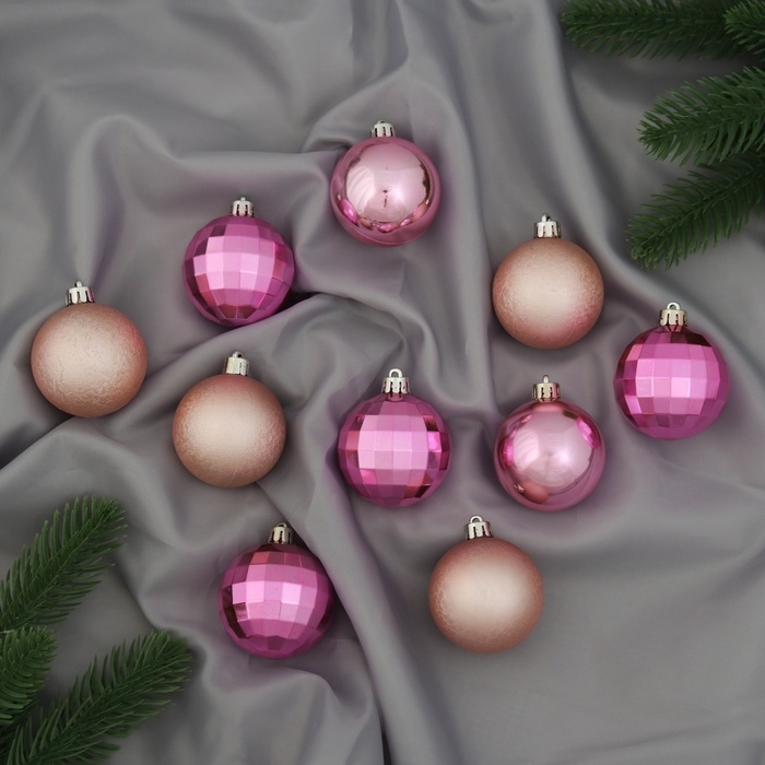 Набор шаров пластик d-5 см, 10 шт "Диско микс" розовый