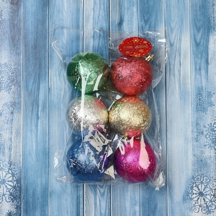 Набор шаров пластик d-6 см, 6 шт "Прокси рельефный" микс