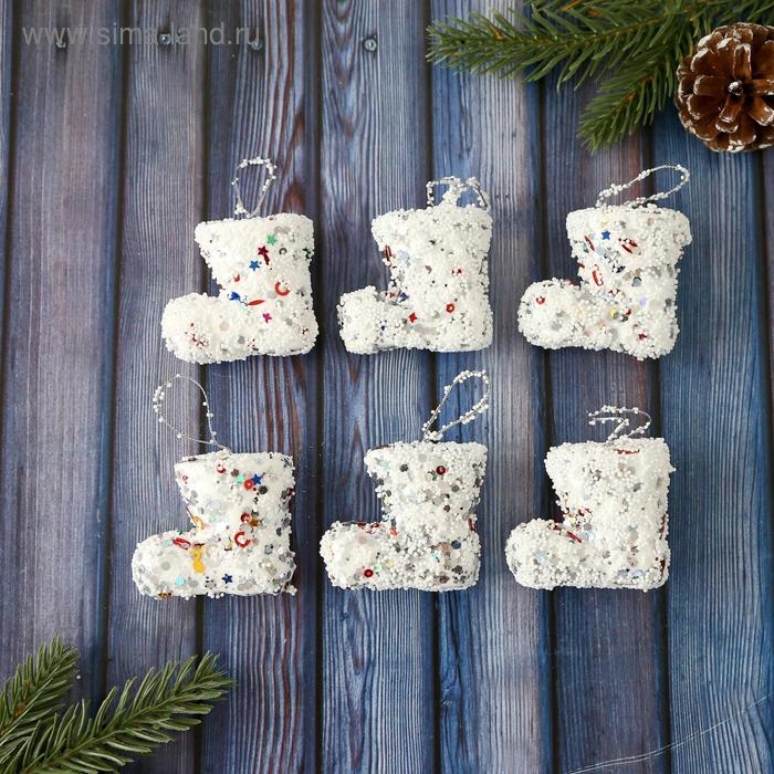 Украшение ёлочное "Сапожки - волшебный перелив" (набор 6 шт) 5х4 см, белый