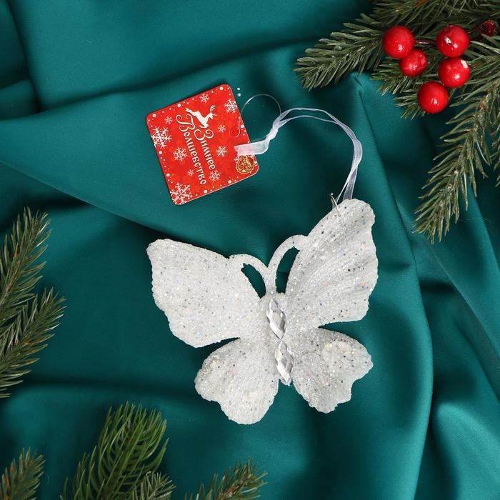 Украшение ёлочное "Морозная бабочка" 10,5х10 см, белый