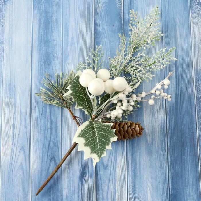 Декор "Зимнее очарование" шишка шарики зелень, 22 см