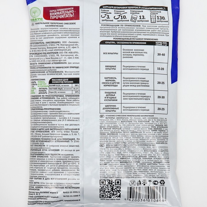 Удобрение минеральное Калимагнезия, 0,9 кг