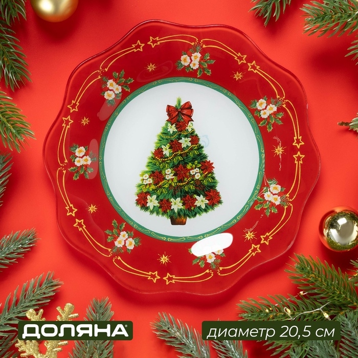 Тарелка стеклянная десертная Доляна «Новогодняя ель», d=20,5 см