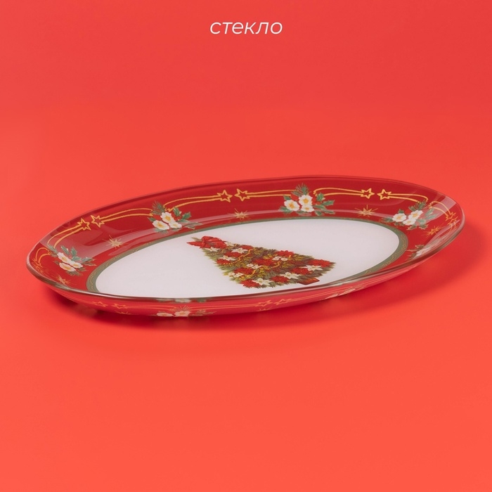 Блюдо стеклянное овальное Доляна «Новогодняя ель», 30×21 см
