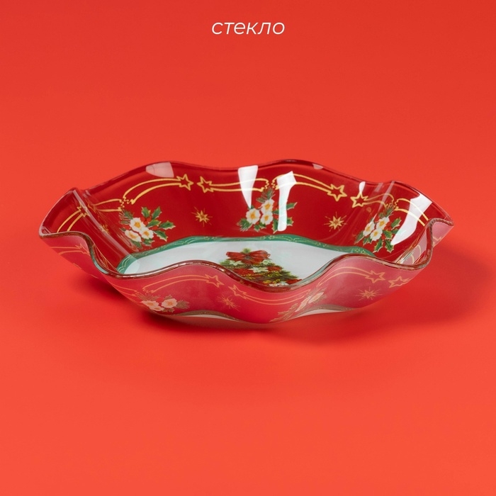 Салатник стеклянный Доляна «Новогодняя ель», 400 мл, 19×3,7 см