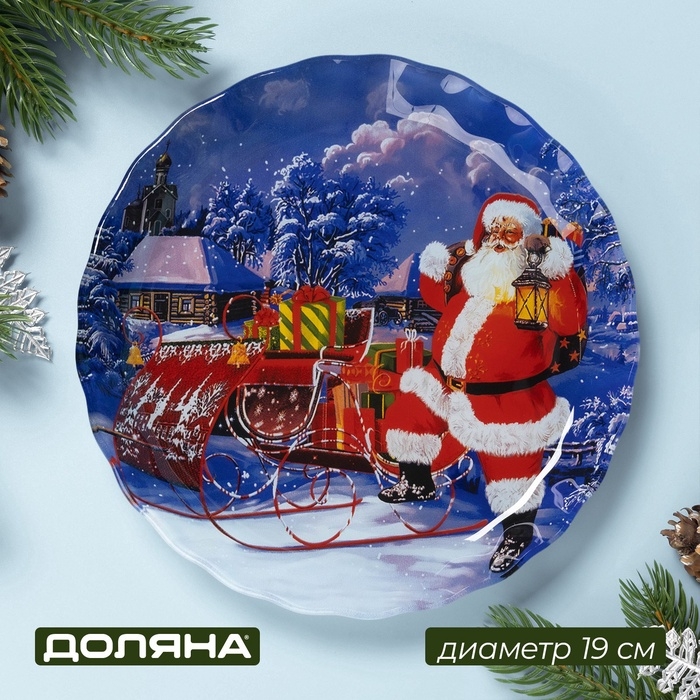 Блюдо сервировочное стеклянное Доляна «Дед Мороз», d=19 см