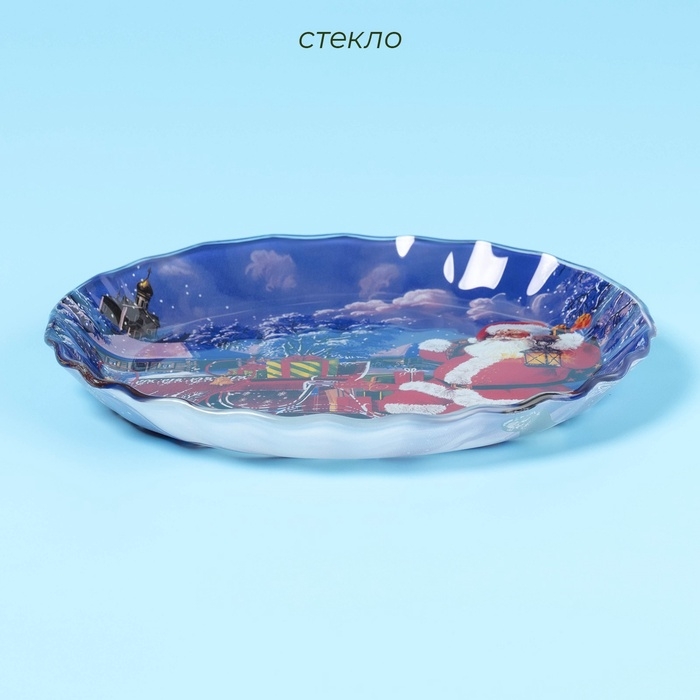 Новогодняя посуда из стекла Доляна «Дед Мороз» создаст радостную атмосферу праздника. Сказочные персонажи, интересные сюжеты и зимние пейзажи не оставят равнодушными не только детей, но и взрослых! Блюда станут ярким акцентом сервировки стола, помогут грамотно организовать пространство. Они подходят для подачи закусок, салатов, десертов и фруктов.